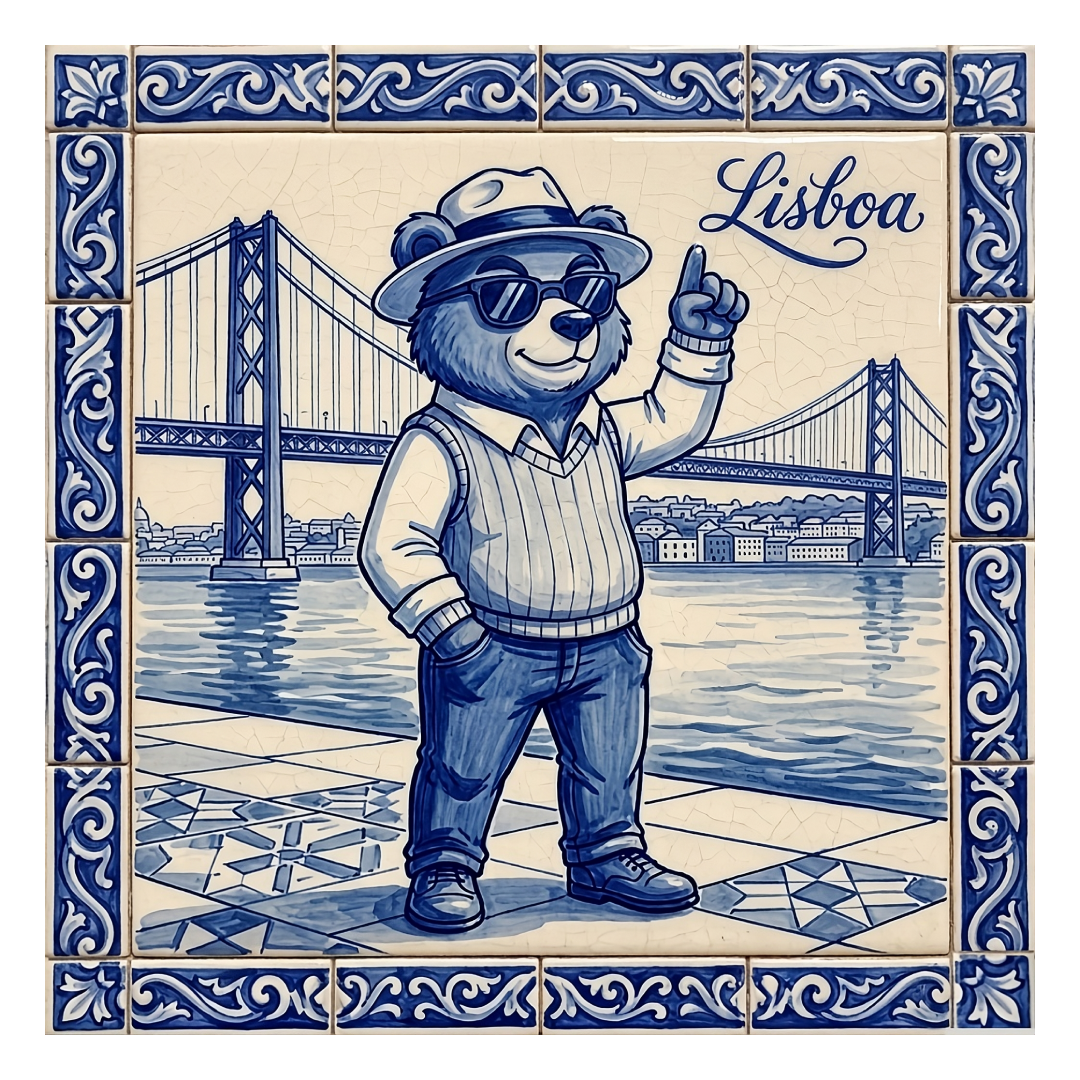 Design: Bear illustration in traditional Portuguese azulejo tile style